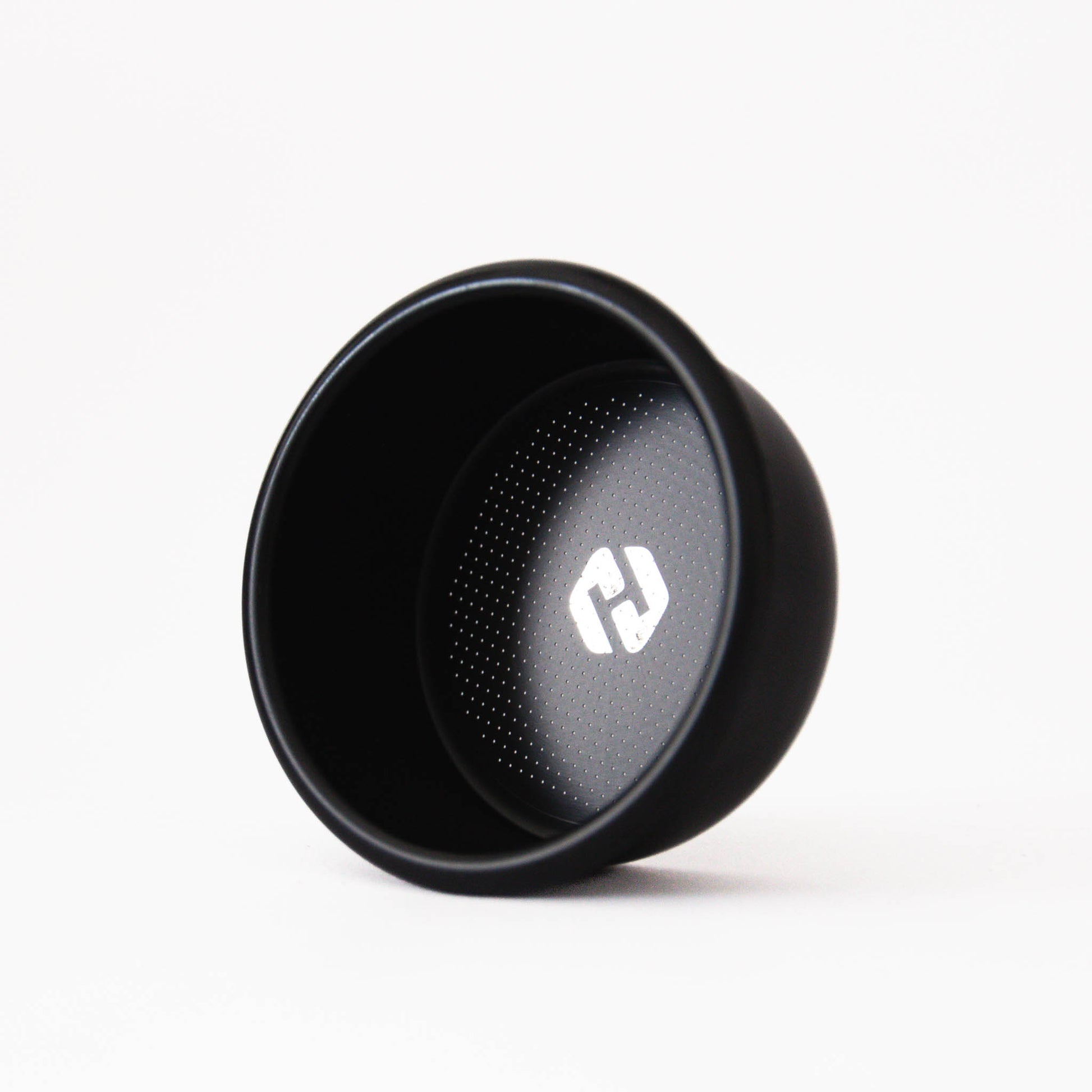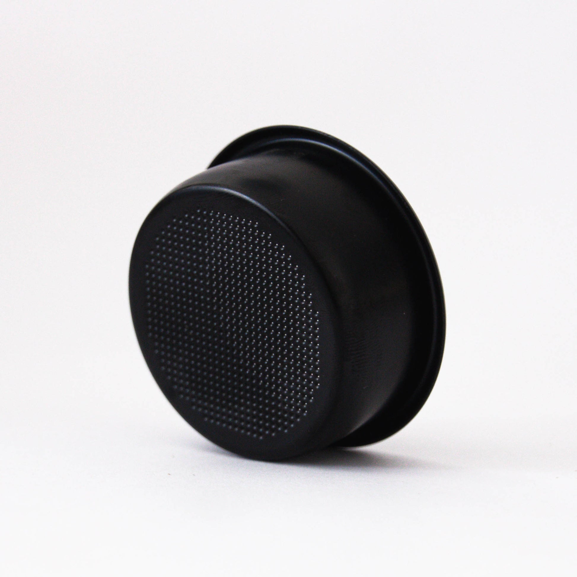 A premium espresso basket engineered for precision and finished in sleek matte black.